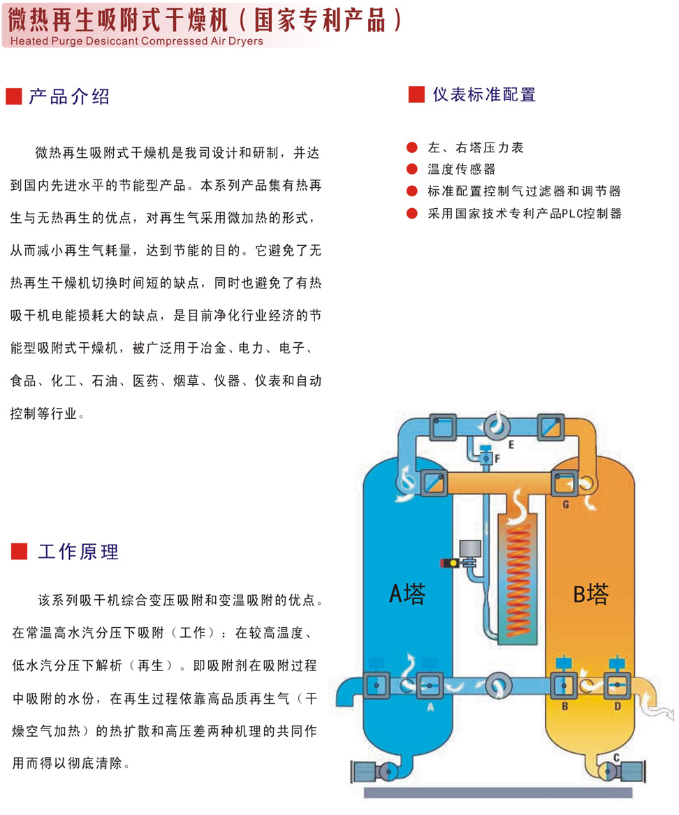 壓縮余熱零耗氣吸附式干燥機