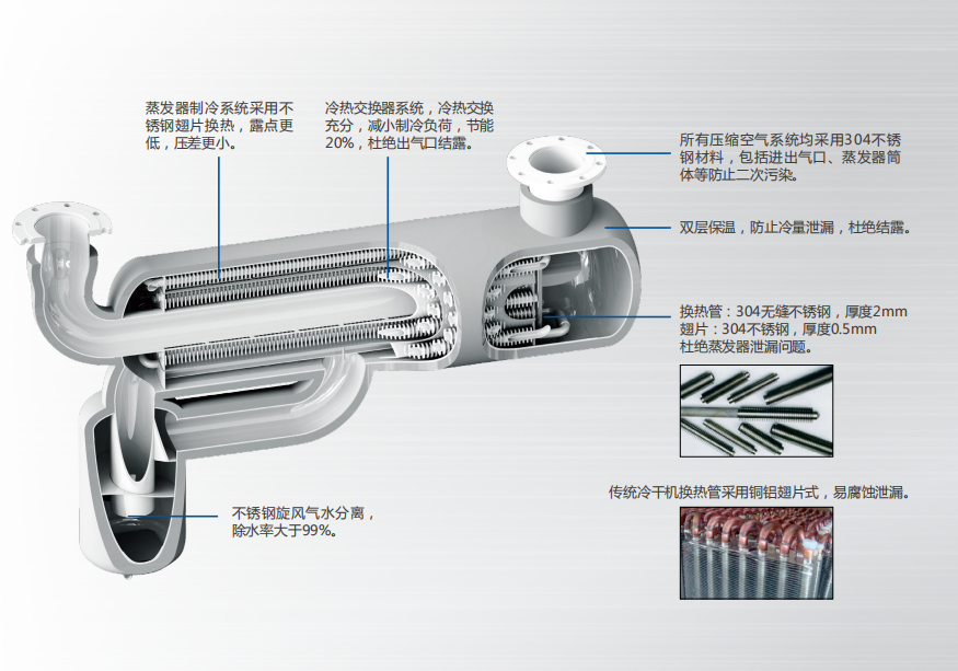 不銹鋼冷干機(jī)核心技術(shù)(專(zhuān)利號(hào):ZL200920263868.5)